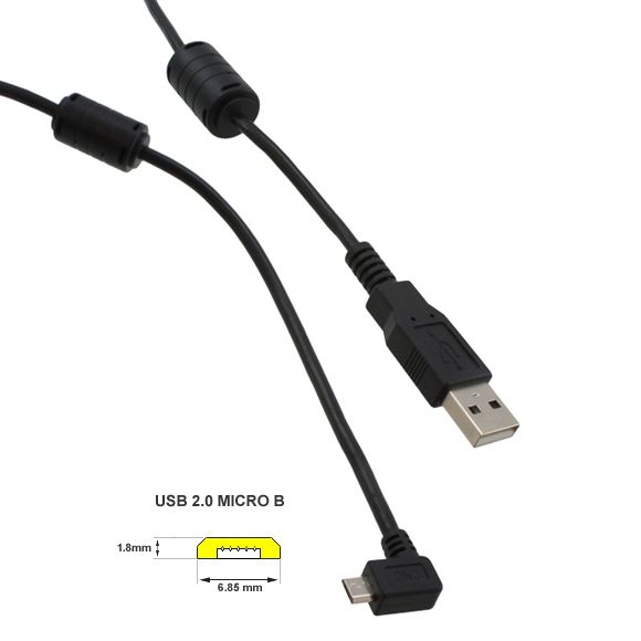 MICRO-USB-Kabel: A-Stecker auf Micro-B 90° WINKEL RECHTS 2x Ferrit 1m