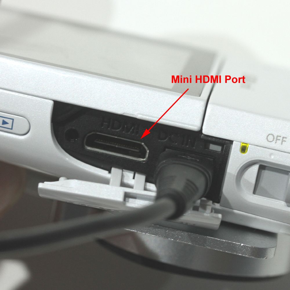 - Anschluss 2: HDMI-MINI-Stecker Typ C (kleine Baugröße: 10.4mm breit, 2.5mm hoch, 19-polig)