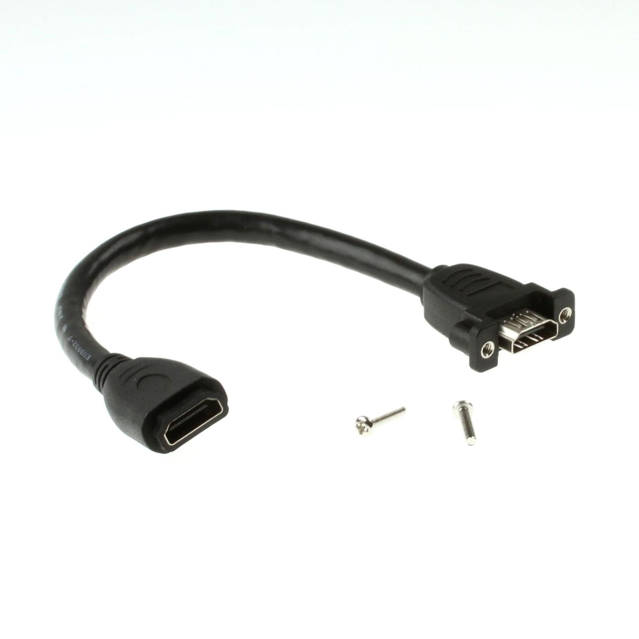 Montagebuchse HDMI für Einbau, 2x HDMI A weiblich (Buchse), mit kurzen Kabel 20cm, inkl. Schrauben, kompatibel zu HDMI High Speed mit Ethernet