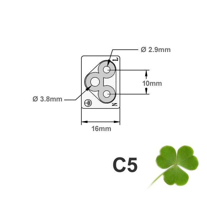 - Spezialstecker C5 in Kleeblatt-Form (3 runde Kontakte als V angeordnet) 90° ABGEWINKELT