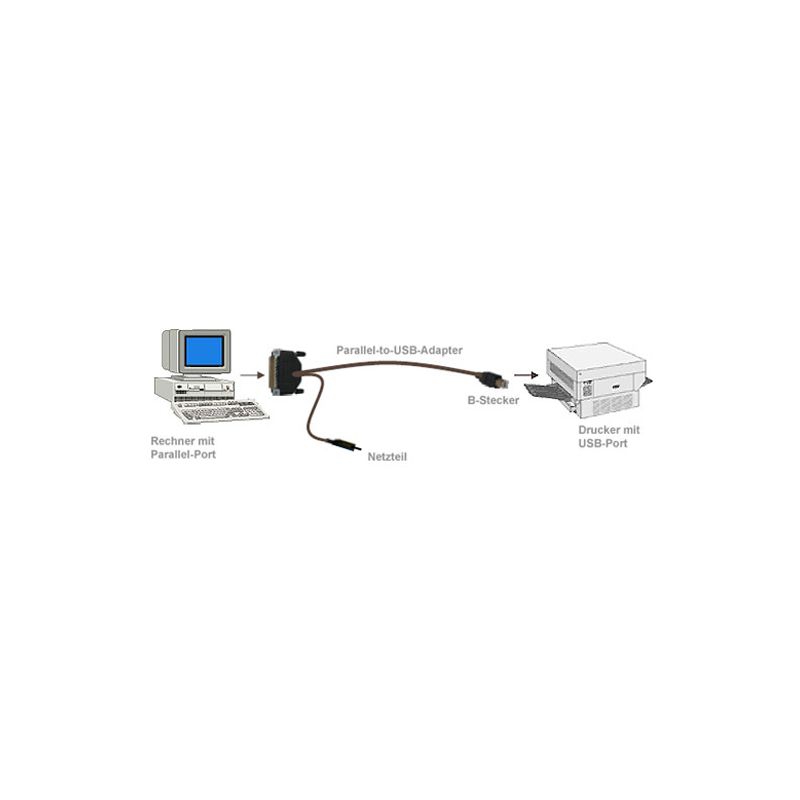 ... ist ein Spezialadapter zum Anschluss von USB-Druckern an die parallele Schnittstelle (LPT) von