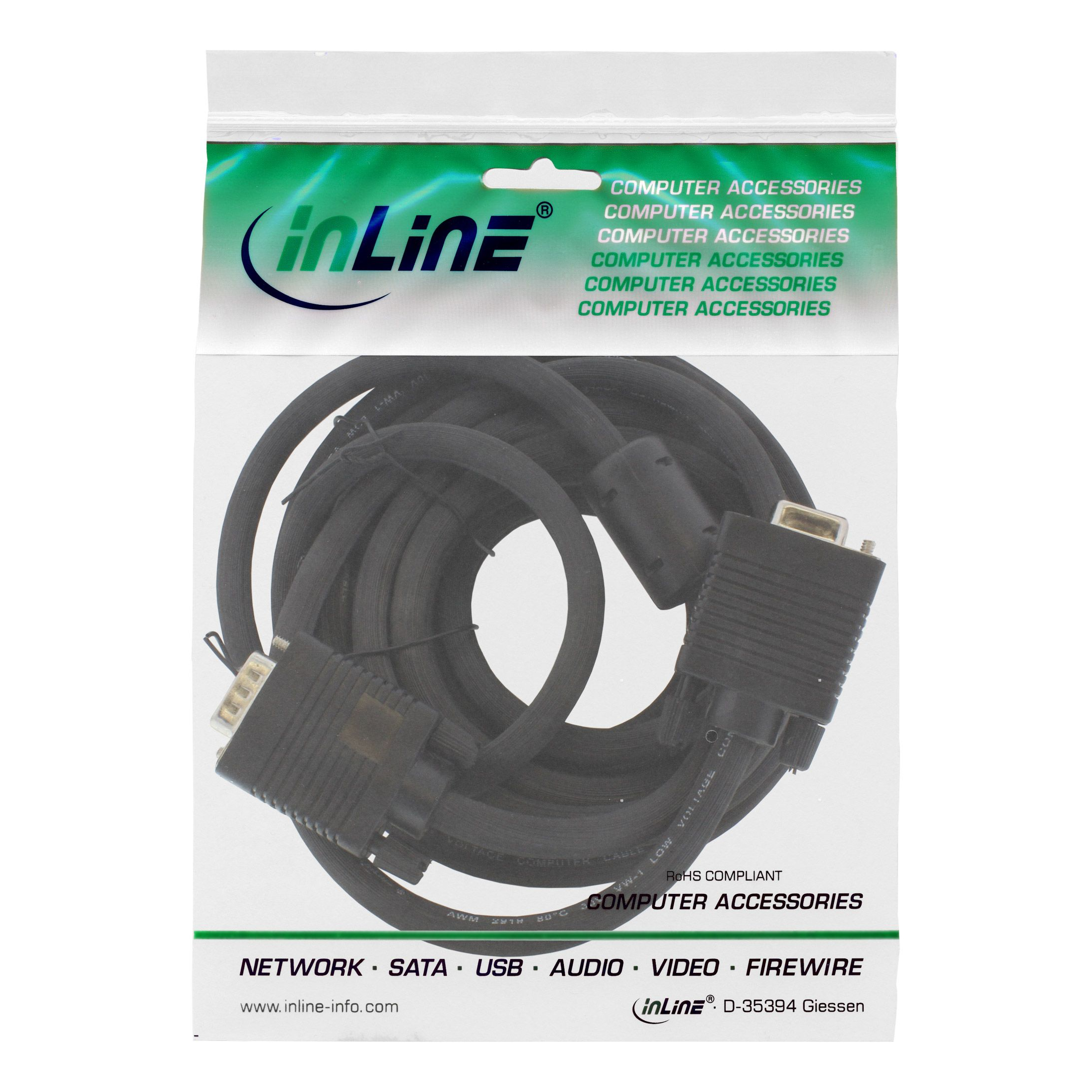 Monitorkabel VGA / S-VGA 5m, Stecker/Buchse-Version, PREMIUM-Qualität, mit Ferritkern, abgeschirmt, 3x Koaxleitung, 7x Datenleitung, HD-DSub-15 männlich/weiblich