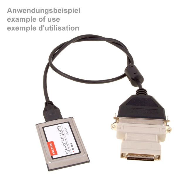 Mit dem hier angebotenen SCSI-Adapter wird ein Standard-SCSI-Kabel mit großem 50-poligen SCSI-Stecker (Cen50m) auf HP-DSub-50 männlich (mit Kontaktstiften) adaptiert.