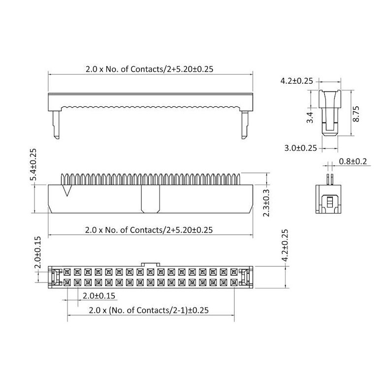 Die IDC-Buchsen werden zum Herstellen von Flachbandkabeln für Festplatten verwendet. Die Montage erfolgt lötfrei in Schneid-/Klemmtechnik. Die Buchsen sind für den Anschluss von 2.5" IDE-Festplatten geeignet. Diese kleinen Festplatten haben Pins, die enger als bei normalen 3.5" IDE-Festplatten nebeneinander stehen. Das sogenannte Pin-Rastermaß ist 2mm (statt 2.54mm bei 3.5" HDDs).