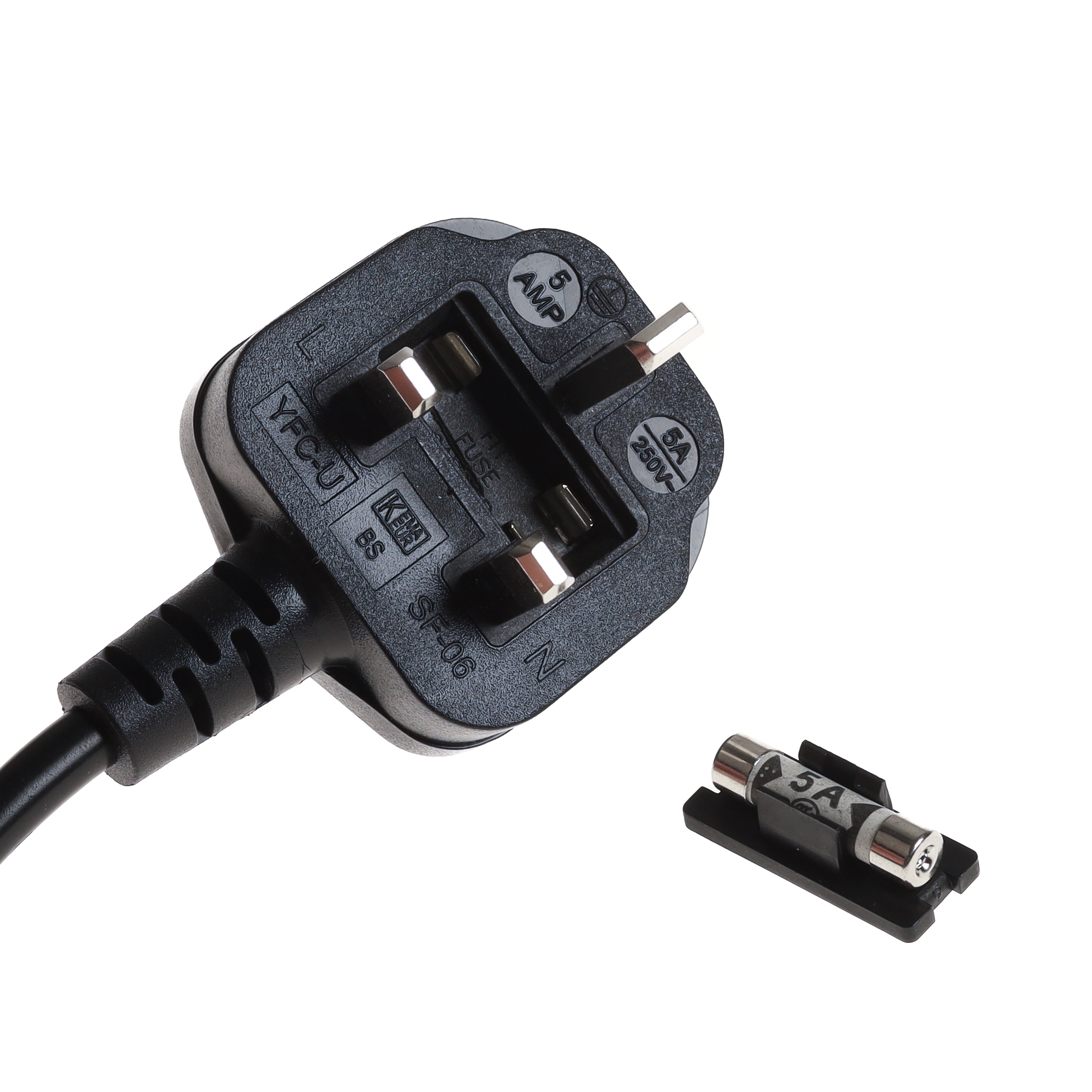 Kaltgerätekabel für GROSSBRITANNIEN / IRLAND, 5m, 240V, BSI od. ASTA, 3 x 1mm², mit eingebauter Sicherung 10 Amp, IEC 60320 w/C13, schwarz