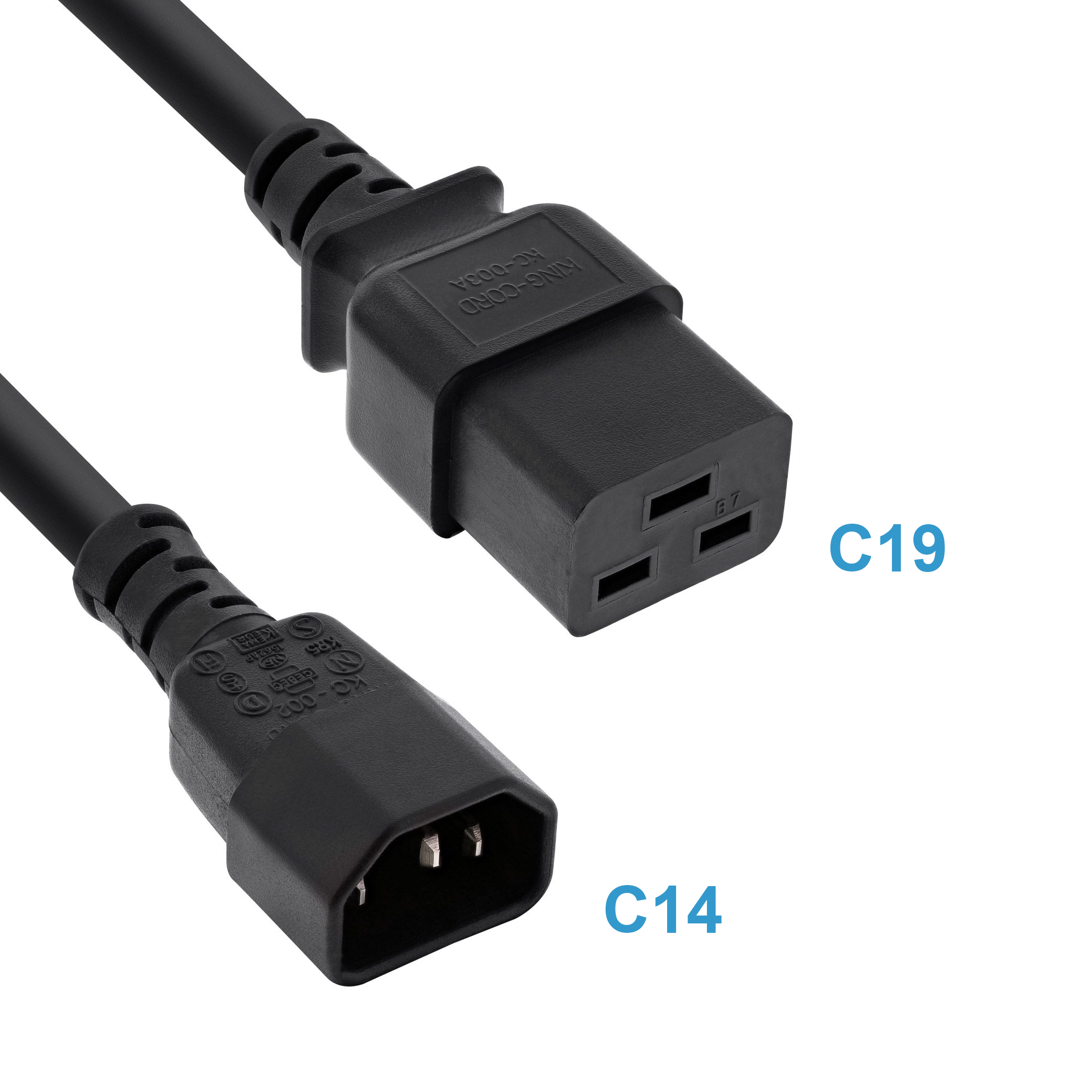 Stromnetz Adapterkabel, IEC-60320 C14 auf C19, max. 10A, 0,5m