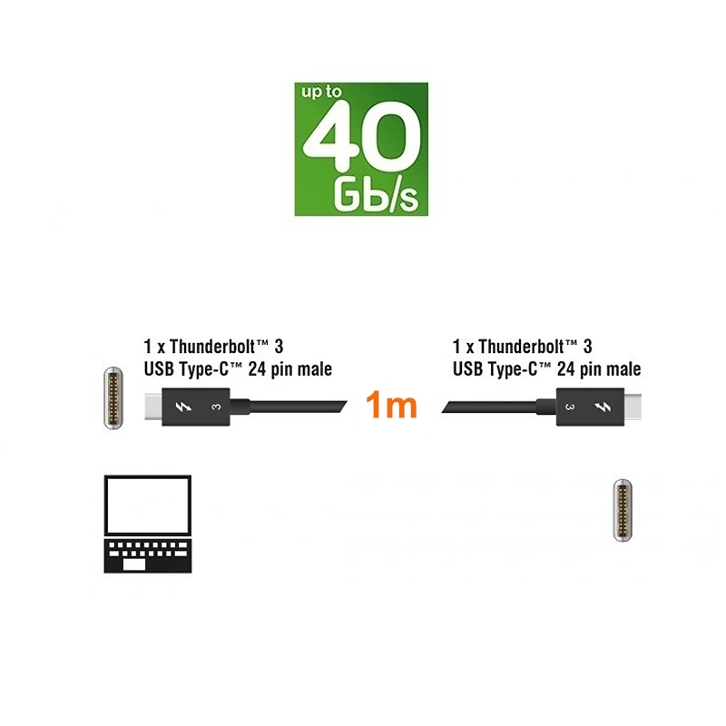 Thunderbolt 3 Kabel, C-C, 40 Gbps, 100W, 5A, 1m, Delock