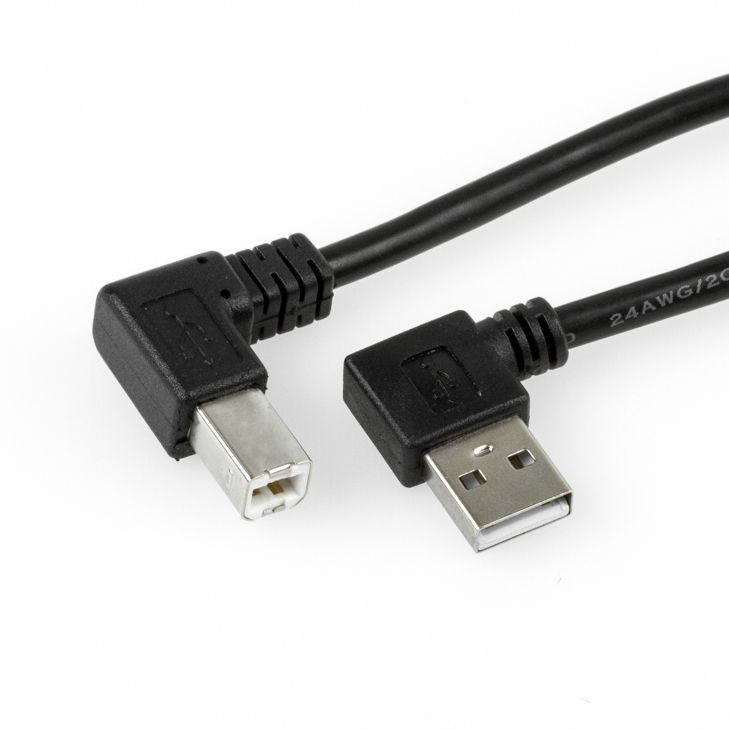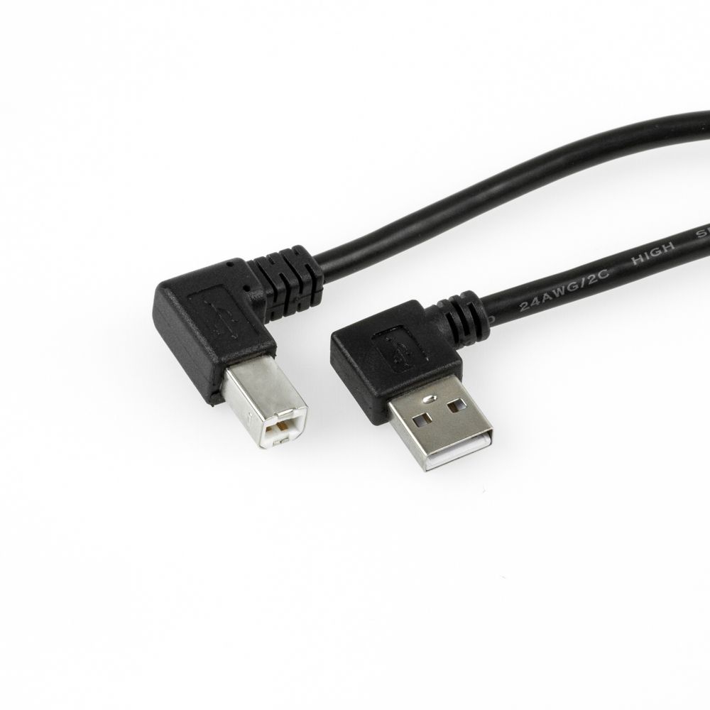 USB 2.0 Kabel AB, Stecker A LINKS gewinkelt, B RECHTS gewinkelt, 1m
