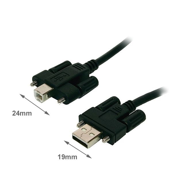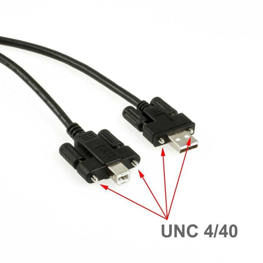Für anschraubbare USB-Stecker gibt es leider keinen Industriestandard, der gewährleistet, dass jedes anschraubbare Kabel passt. Bitte prüfen Sie daher, ob bei Ihnen Schrauben vom Typ UNC4/40 die richtigen sind. Zudem sind die Schraubenabstände wichtig: Schraubenabstand A-Stecker 19mm und B-Stecker 24mm