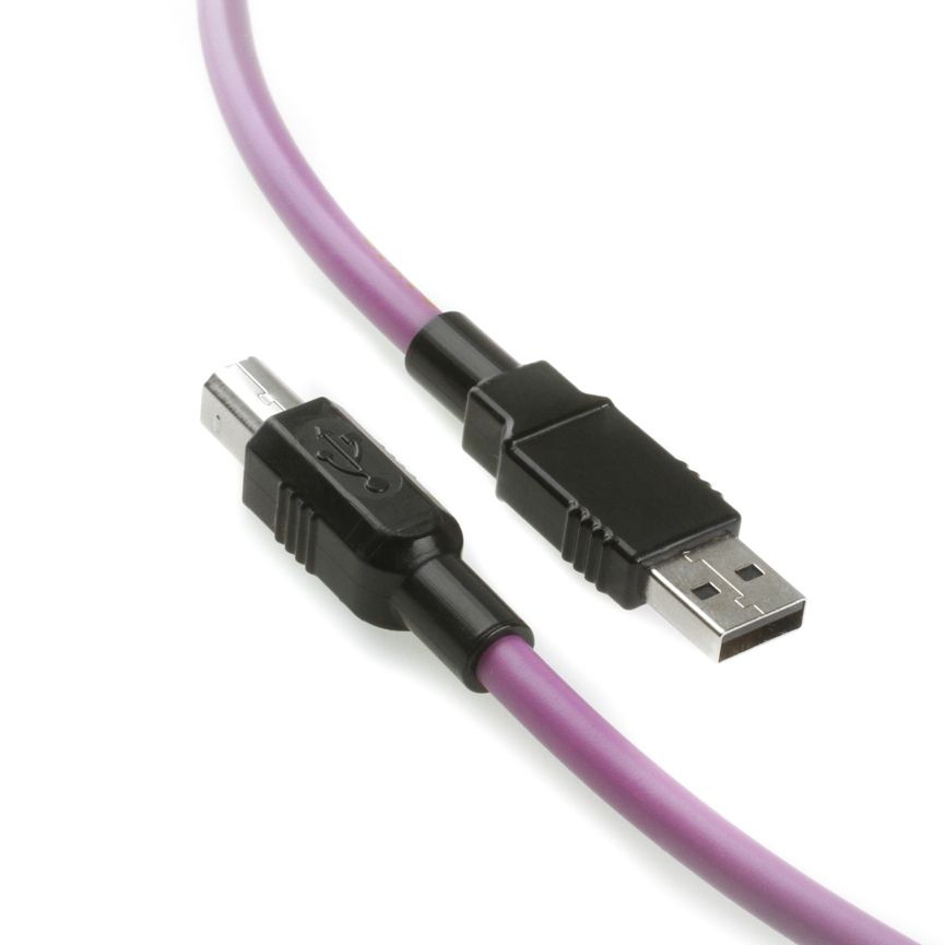 Das USB-Kabel vom Typ A/B wird fertig konfektioniert mit Steckern geliefert. Kundenspezifische Wünsche (wie z.B. Sonderlängen oder andere Stecker) können berücksichtigt werden, weil wir dieses High-End-Kabel in Deutschland herstellen und kleinere Stückzahlen üblich sind. Aufgrund der sehr dicken Kupferadern (AWG22) und der sehr guten Kupferschirmung (>90% Abdeckung) sind USB-Kabellängen bis 12m ohne Verstärkereinsatz möglich.