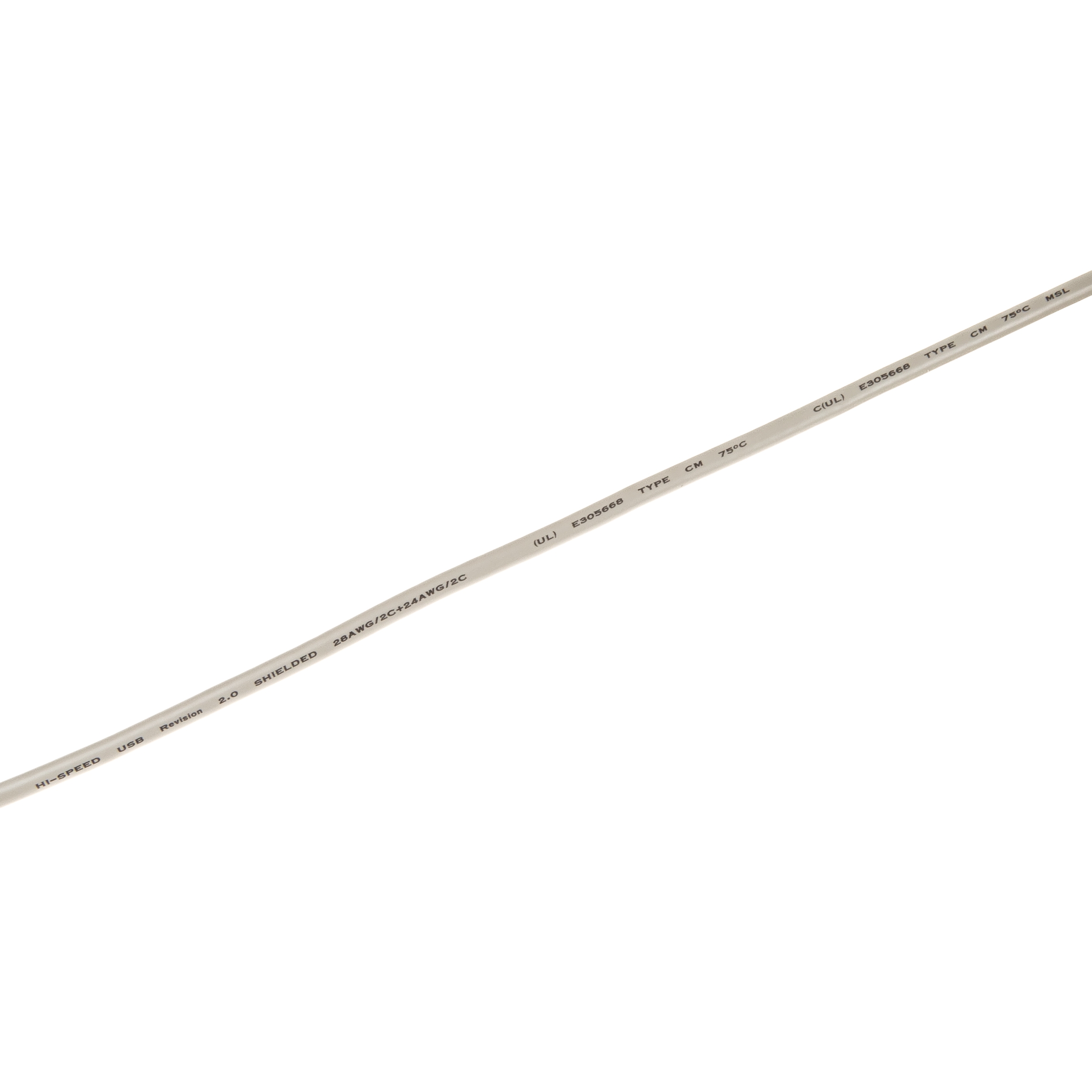 USB-2.0-Kabelrolle, 500m, Kabelmaterial gemäß USB-Norm: AWG28/1P (twisted pair) + AWG24/2C (5V Stromverbindung), doppelt geschirmt (Alufolie + Geflecht), USB 2.0 kompatibel, Kabeldurchmesser 4,5mm, Farbe: grau