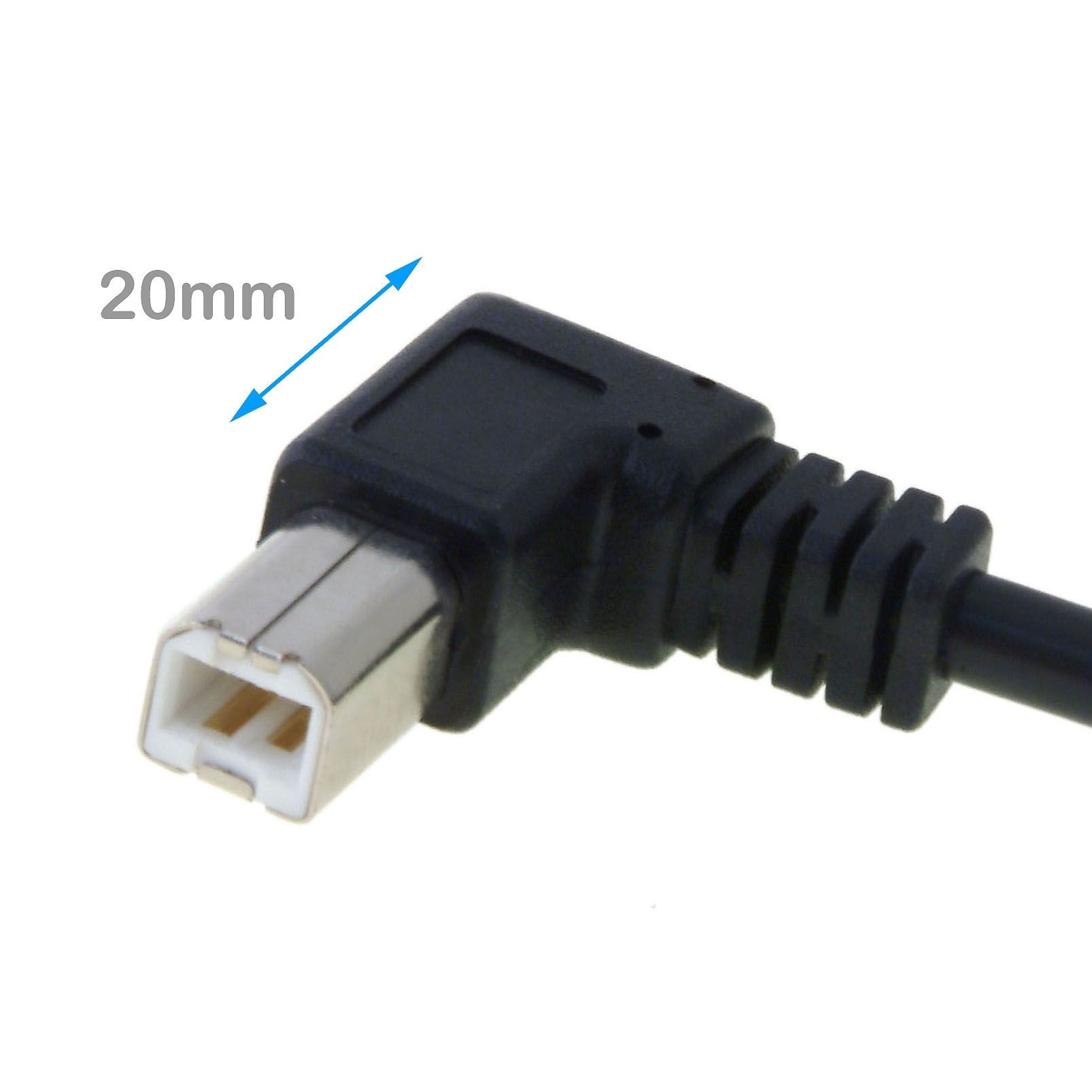 Das hier angebotene USB-Kabel hat einen um 90° abgewinkelten USB-Stecker Typ B. Dadurch eignet sich das Kabel besonders für den platzsparenden Anschluss von USB-Geräten. Der Stecker-Überstand ist nur 20mm.