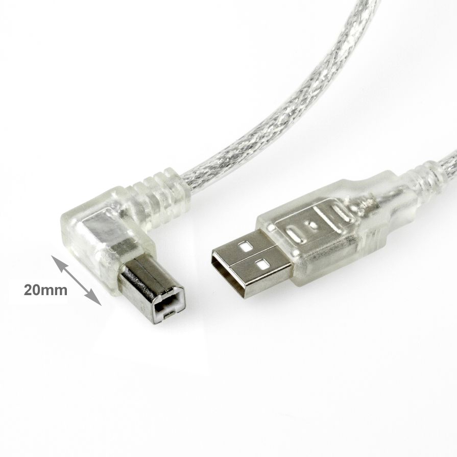 Das hier angebotene USB-2.0-Kabel hat einen um 90° abgewinkelten USB-Stecker Typ B. Dadurch eignet sich das Kabel besonders für den platzsparenden Anschluss von USB-Geräten. Der Stecker-Überstand ist nur ca. 20mm.