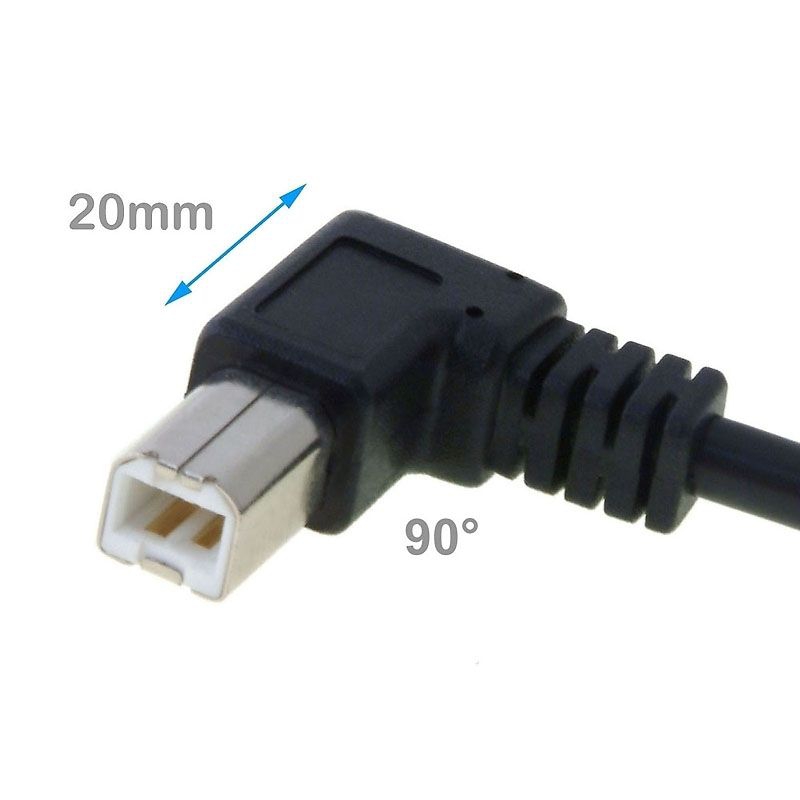 Das hier angebotene kurze USB-Kabel hat einen um 90° abgewinkelten USB-Stecker Typ B. Dadurch eignet sich das Kabel besonders für den platzsparenden Anschluss von USB-Geräten. Der Stecker-Überstand ist nur ca. 20mm.