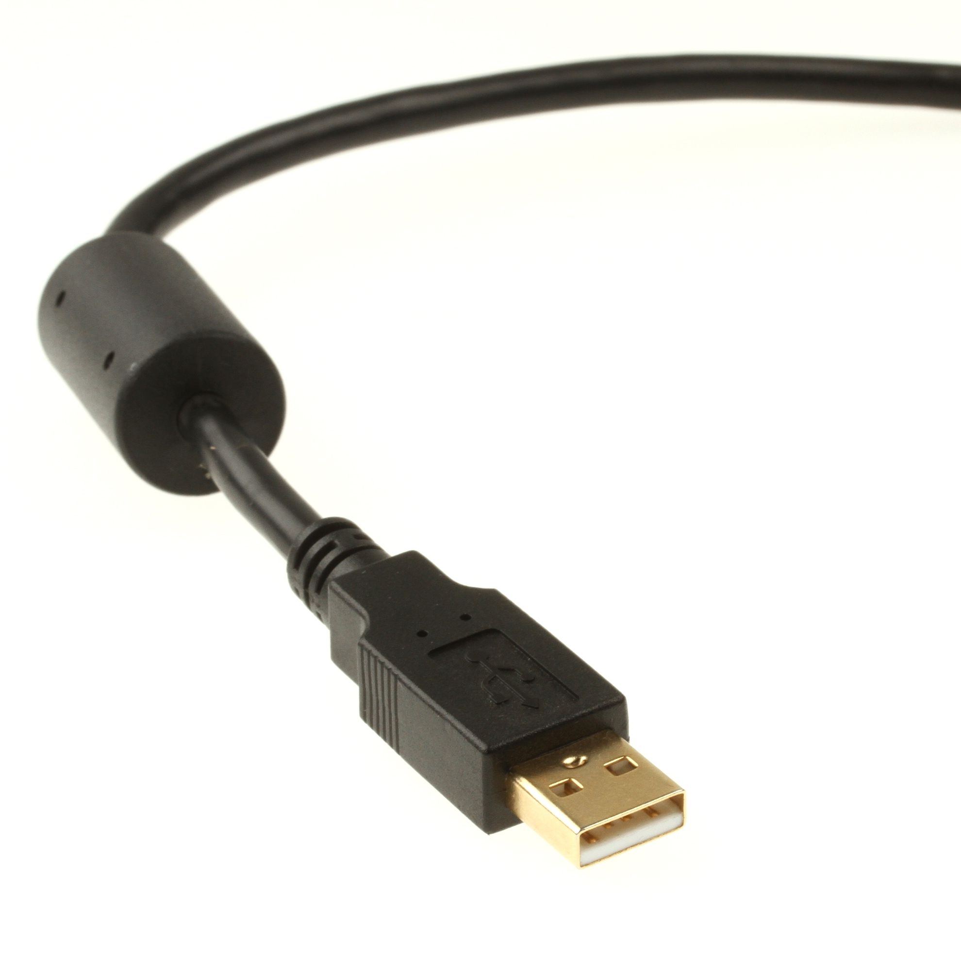 - 30µm vergoldete Stecker: Die Steckverbinder USB-A und USB-B sind nicht allein an den vier innenliegenden Kontakten vergoldet. Auch die sichtbare Außenseite der Stecker hat eine 30µm Goldauflage, was eine zuverlässigere Verbindung bzgl. der Schirmung bewirkt.