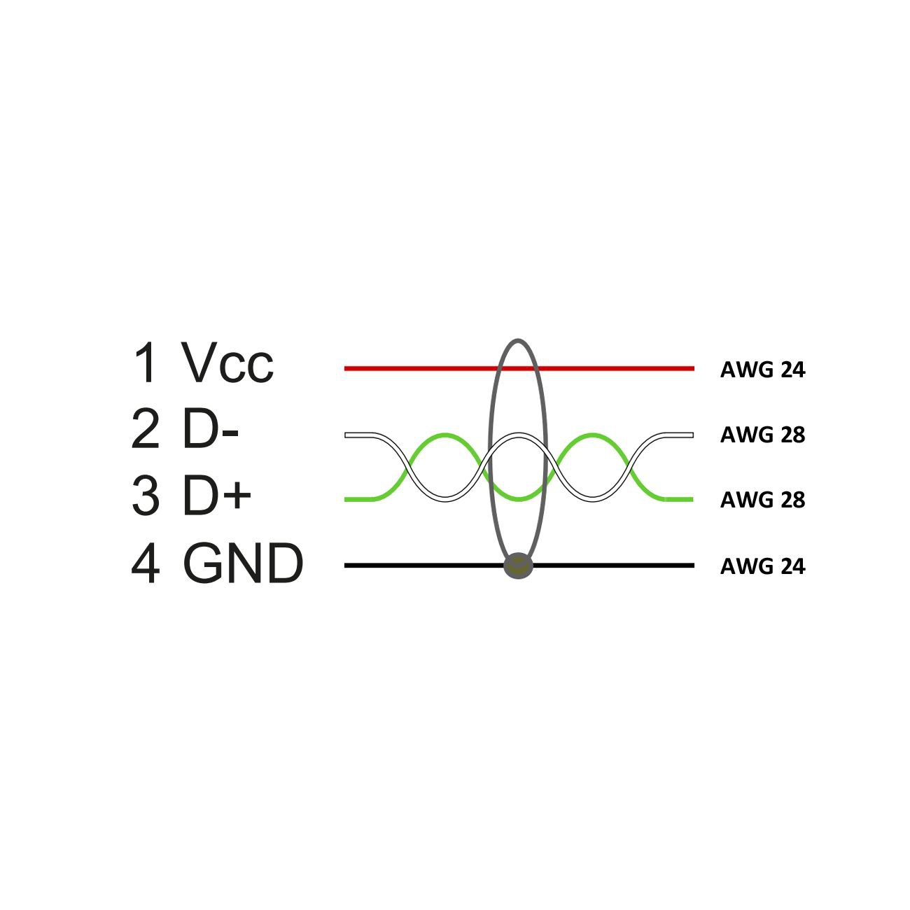 - 28 AWG Datenleitung, 24 AWG Stromleitung