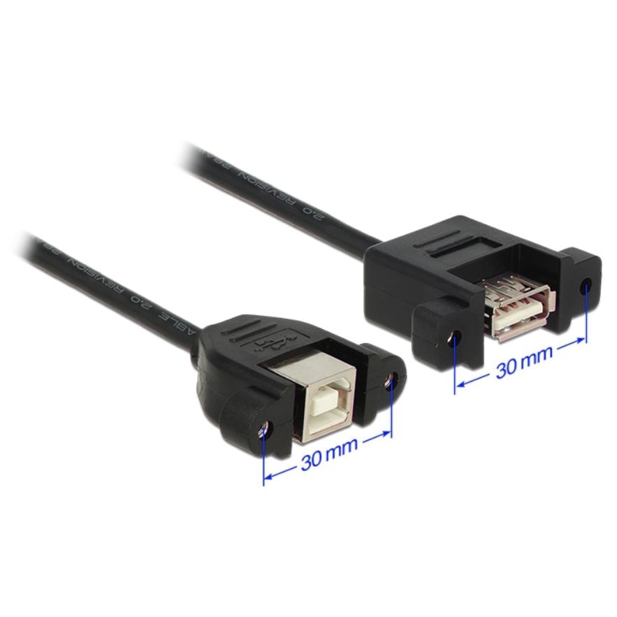 USB 2.0 Montagekabel A-Buchse (anschraubbar) B-Buchse (anschraubbar), USB High Speed kompatibel (max. 480 MBit/s), doppelt abgeschirmt, inkl. 3 Schrauben (Schraubenabstand 10mm)