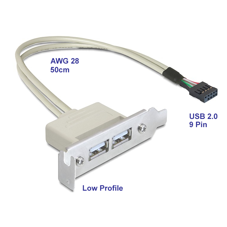 USB 2.0 Slotblech LOW PROFILE, 50cm