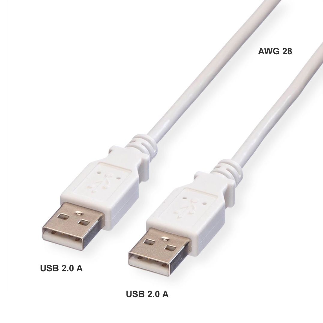Spezielles USB-Kabel mit Stecker A an Stecker A (AA entspricht nicht USB-Norm), 1.8m, für USB 1.1 + USB 2.0 (bis 480 MBit/s), Adernstärke: 28AWG/1P und 24AWG/2C, Farbe: weiss