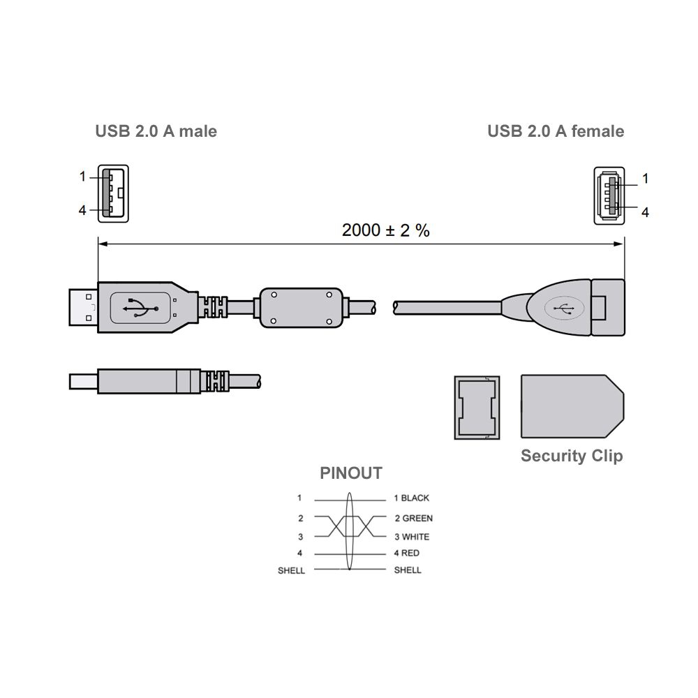 USB 2.0 Verlängerung AA mit Befestigungs-Klipp 2m