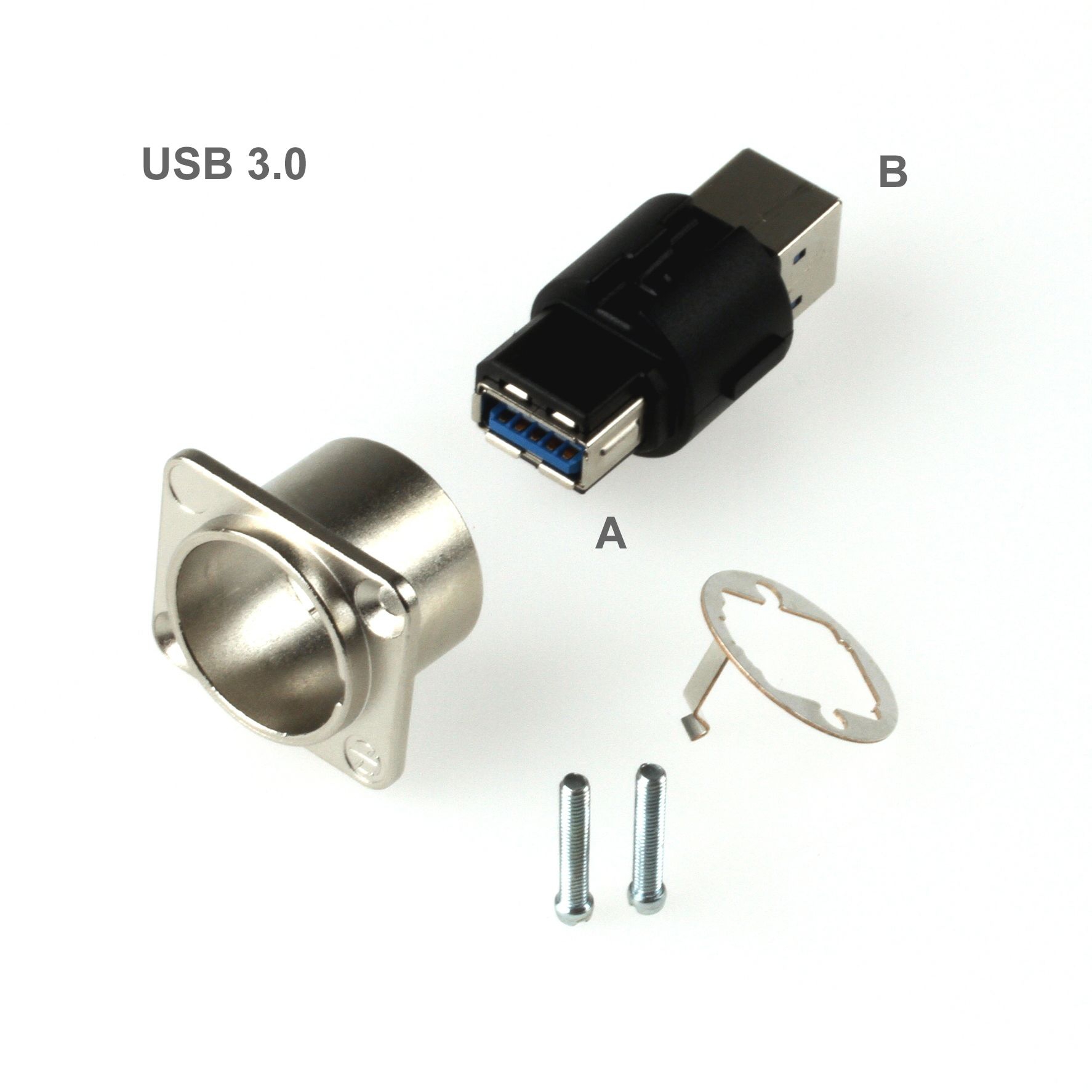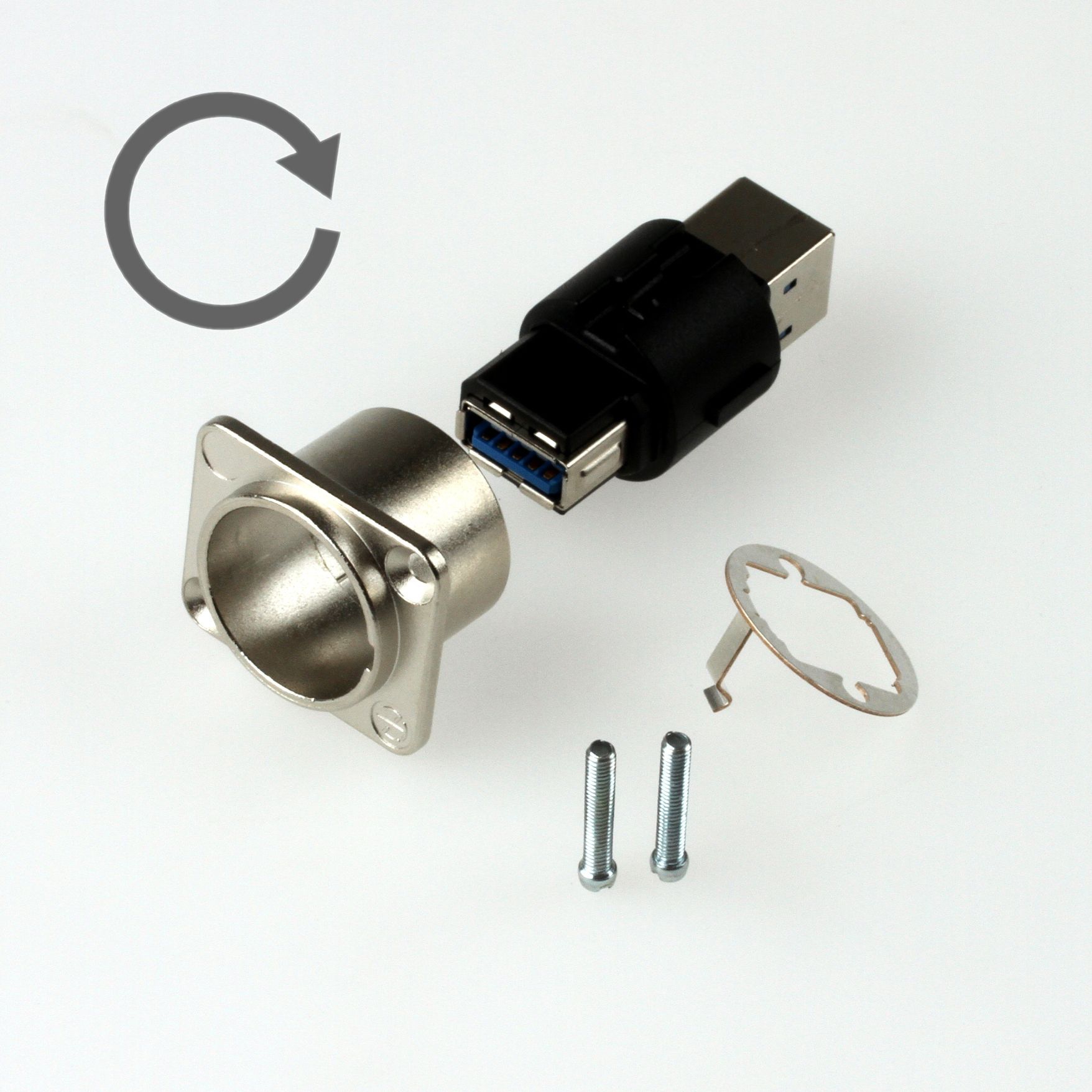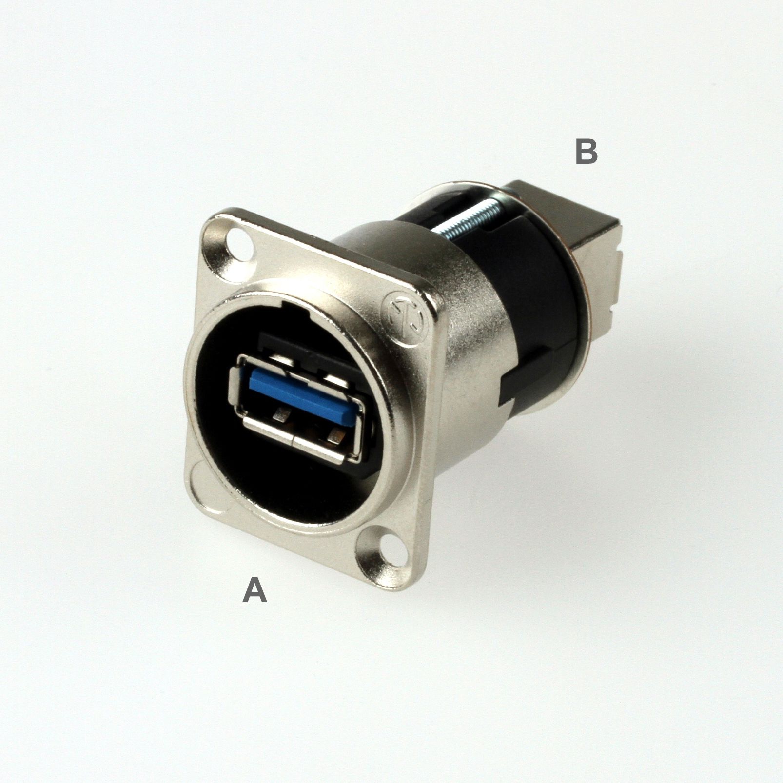 USB 3.0 Einbauadapter von NEUTRIK, D-Gehäuse Metall, silber