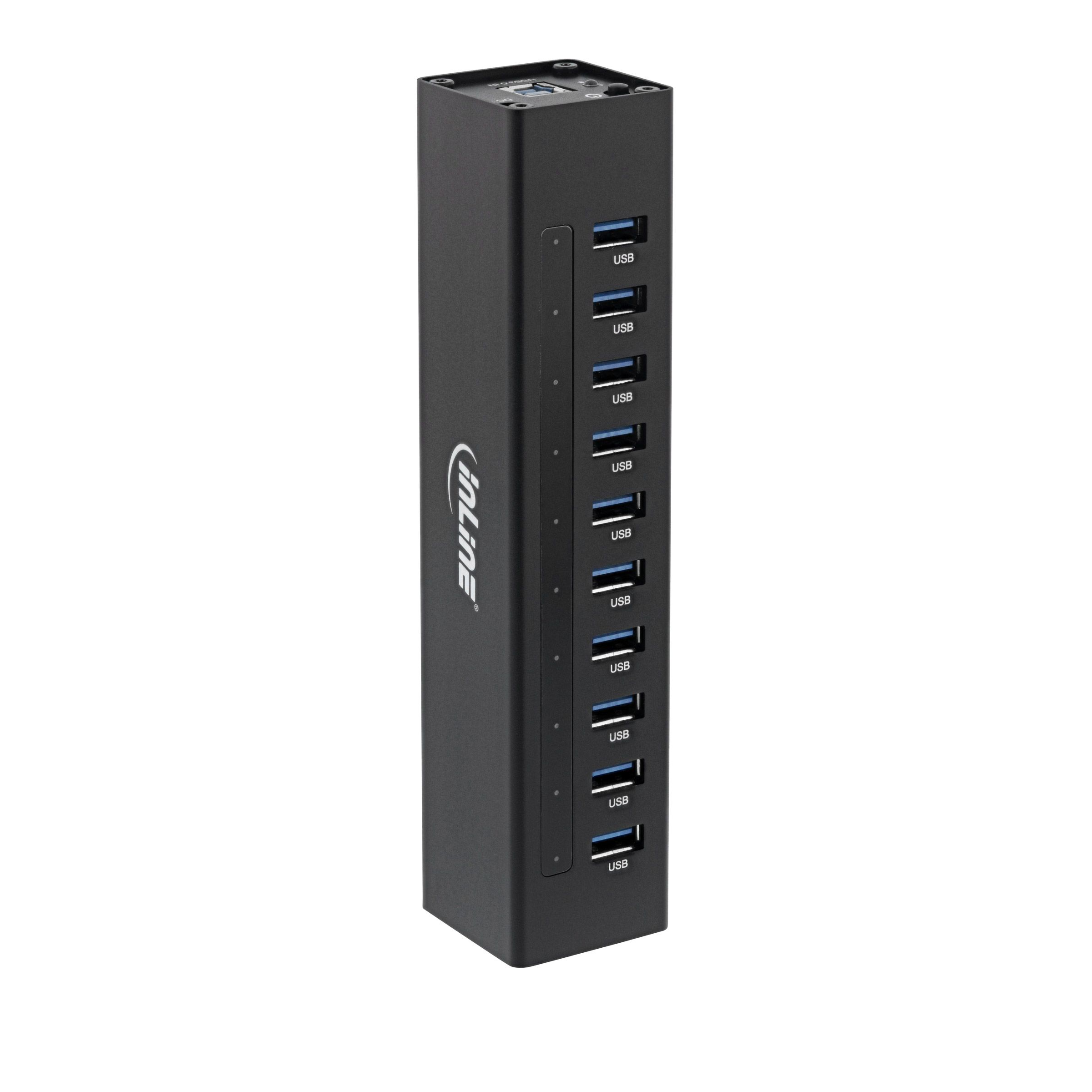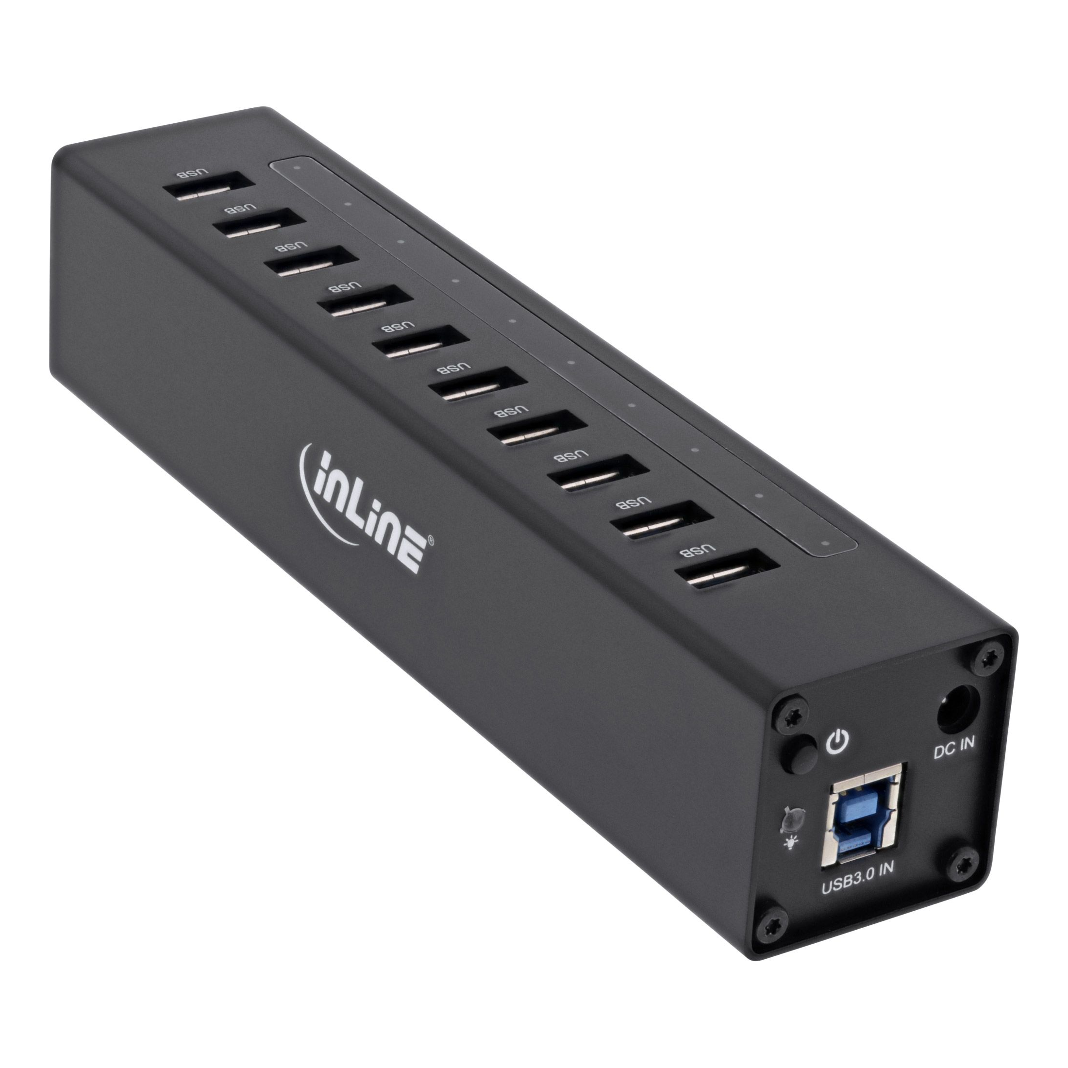 10 Port USB 3.0 HUB im Metall-Gehäuse (ALU), 10x A-Buchse + 1x B-Buchse, inkl. USB 3.0 Kabel und ext. Netzteil 4A