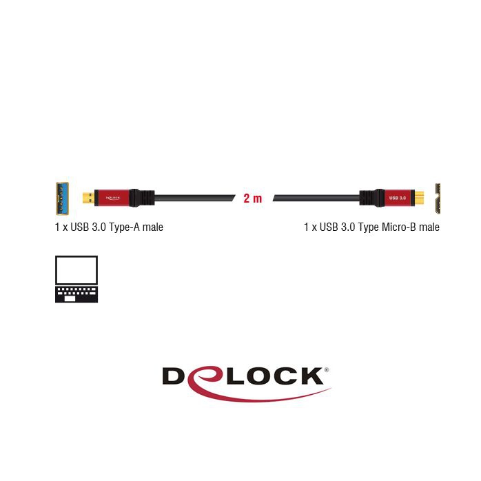USB 3.0 Kabel A an MICRO B PREMIUM Qualität mit Metallsteckern 2m