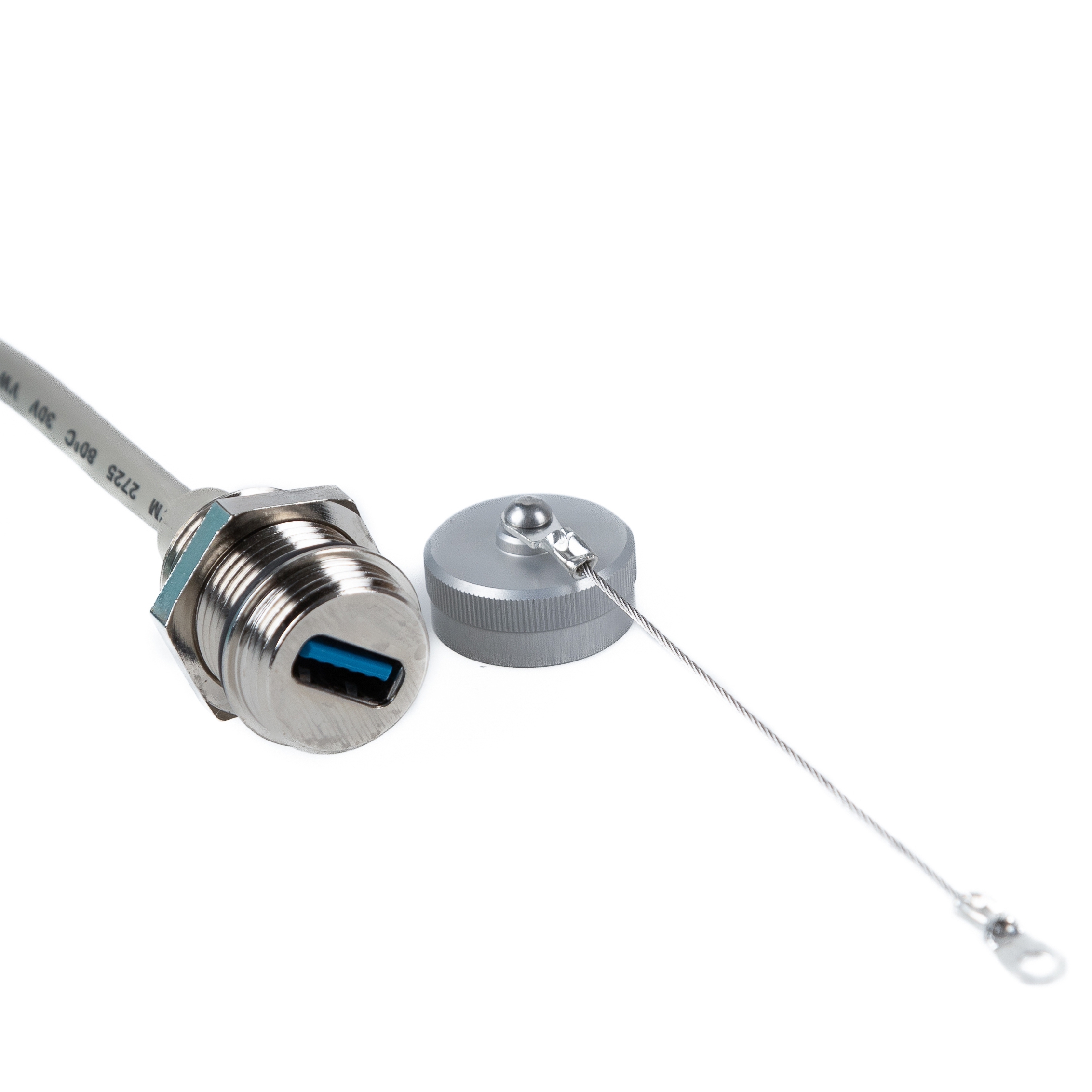USB 3.0 Panel Montagekabel AA mit Kappe (IP67), Kappen-Halteseil außen, 1m