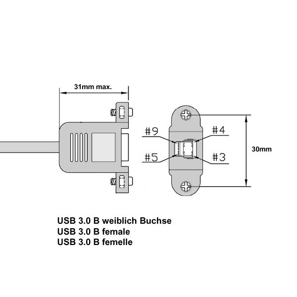 - Buchse USB 3.0 Typ B (anschraubbar)
