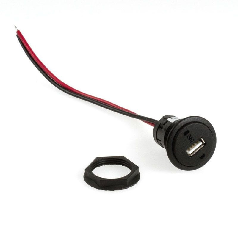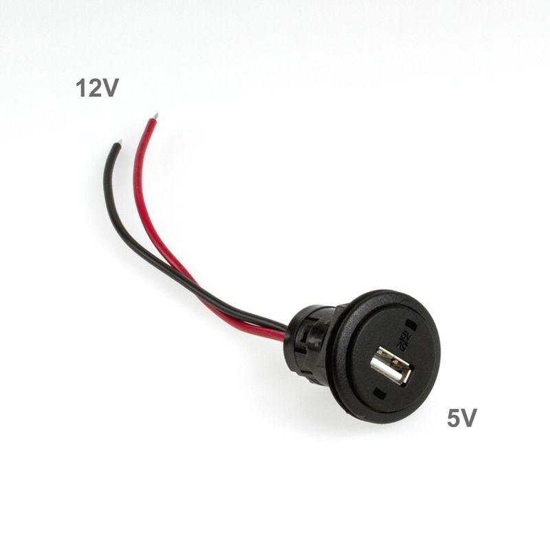 Mit dieser Einbausteckdose können Sie professionell eine USB-Ladebuchse in Ihrem Auto, LKW, Wohnmobil oder Boot nachrüsten. Das rückwärtige, 2-polige Kabel wird einfach an das 12V Bordnetz angeklemmt. Rot ist Plus.