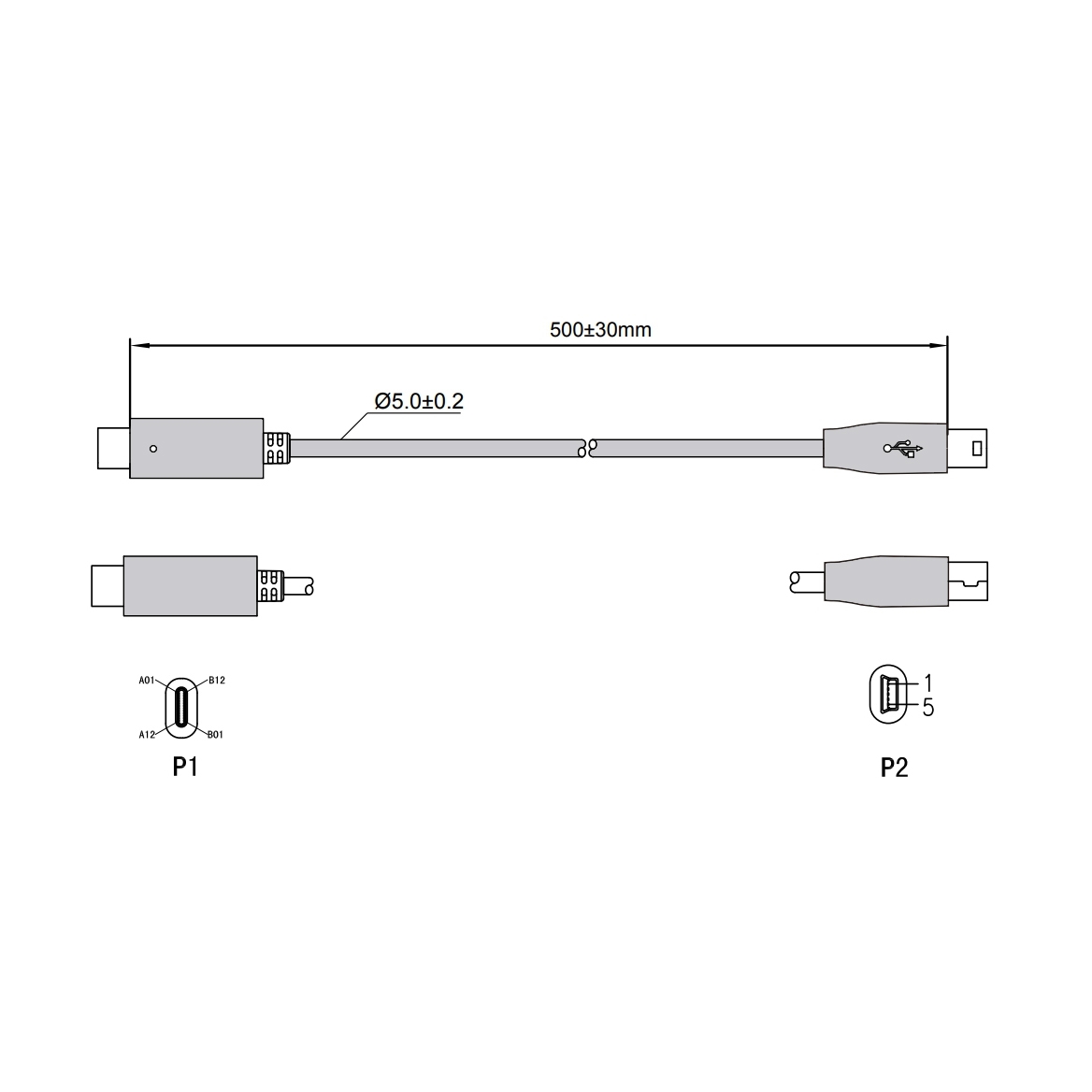 USB-Kabel Type-C™ Stecker auf Mini B Stecker 50cm