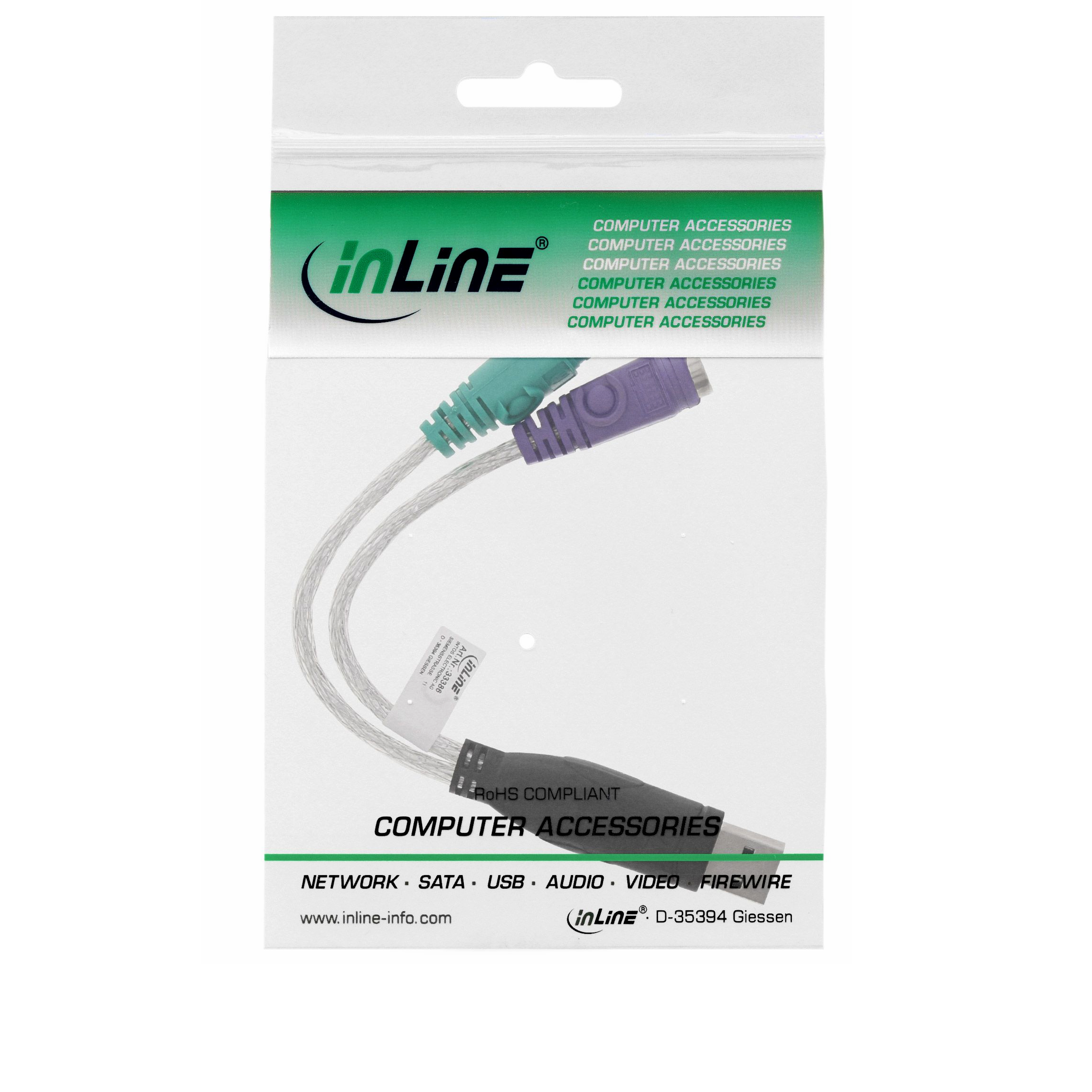USB-PS/2-Adapter: USB-Stecker Typ A an 2x Mini-DIN-6-Buchse, für Anschluß von PS/2-Maus u. PS/2-Tastatur via USB, Port-Fraben gemaß PC99-Norm