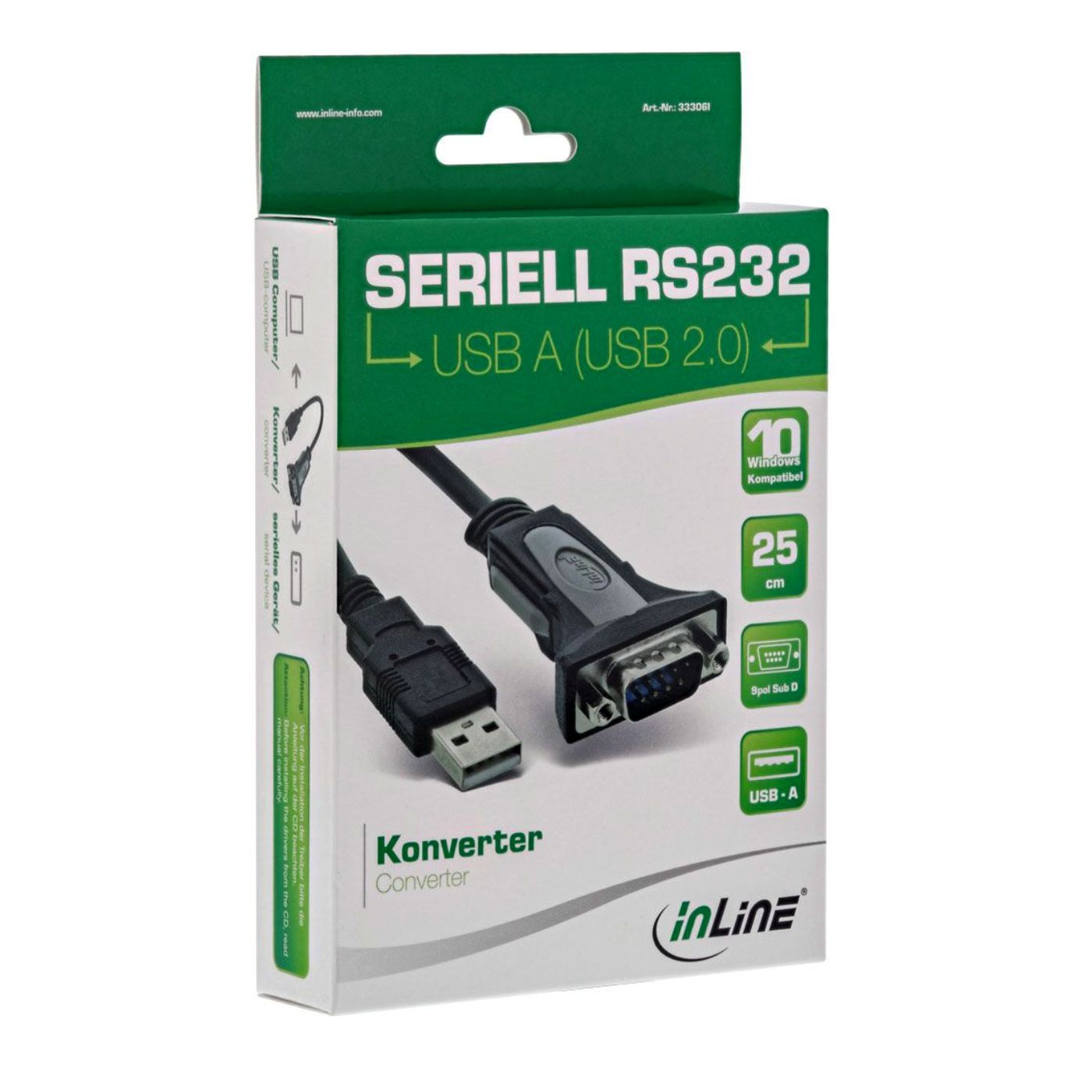 Adapterkabel USB 2.0 an seriellen Port (RS-232), ca. 25cm, für PC, USB-Stecker Typ A an DSub-9 männlich, inkl. Mini-CD mit Treibern (Windows 10, 8, 7, XP, Linux u.a.), Chipsatz: FTDI