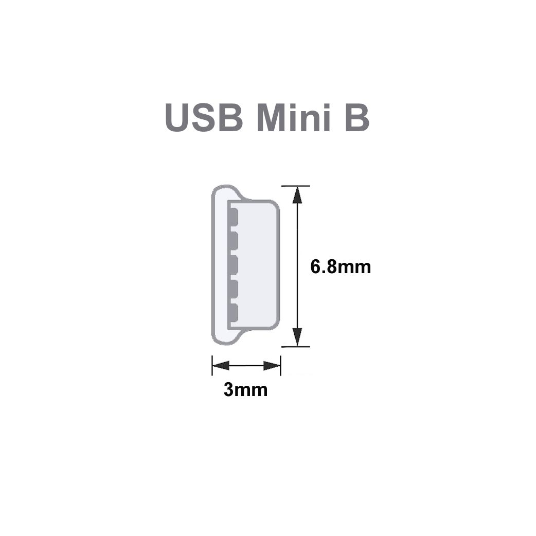 Wir bezeichnen den Mini-B-Stecker als NACH LINKS gewinkelt. Möglicherweise ist das, was wir als 'nach links' bezeichnen, bei Ihnen nach oben, unten oder rechts gewinkelt. Zur Verdeutlichung der 90° Winkelung haben wir ein oben Erläuterungsbild. Bitte prüfen Sie vor der Bestellung, ob die hier angebotene Winkelrichtung für Ihre Anwendung korrekt ist