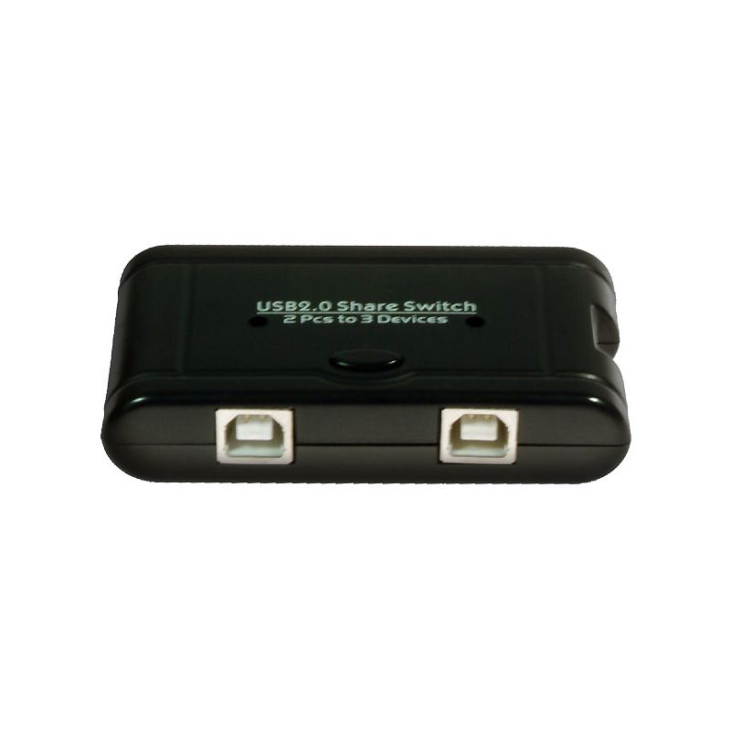 USB 2.0 Switching HUB 2:3 (2 PCs/Macs teilen sich 3 USB-Geräte), Umschaltung per Kopfdruck (keine Software erforderlich), ohne Netzteil, inkl. 2 USB-Kabeln