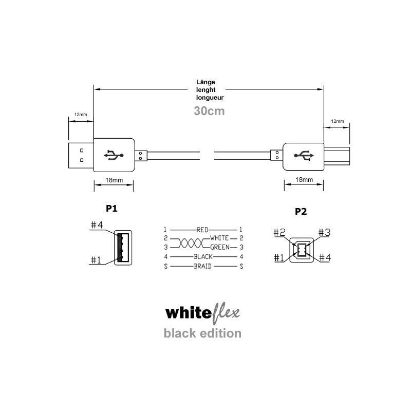 WHITEFLEX Black Edition USB 2.0 Kabel schwarz + flexibel 30cm